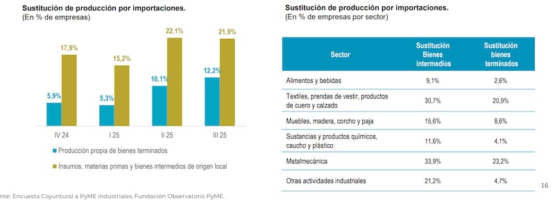 El punto más sensible del informe apareció en la creciente presión importadora. Según la encuesta, el 37% de las PyMEs industriales declaró haber reducido su presencia en el mercado local frente a la competencia extranjera, un registro que superó el 33% del trimestre anterior. De acuerdo con el Observatorio PyME, ese nivel representó un “máximo histórico para la serie que data de 2007”, una señal que se observó con especial atención en un contexto de bajo dinamismo de las ventas.