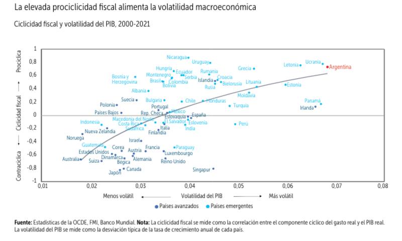"La pro-ciclicidad fiscal, combinada con la incertidumbre sobre las políticas, amplifica en lugar de minimizar, los shocks económicos, produciendo mayor volatilidad. Reformular el cálculo de indexación de las pensiones para proteger mejor el valor real de las prestaciones frente a variaciones inesperadas de la inflación, fortalecer estabilizadores automáticos como el impuesto a la renta de personas o introducir reglas fiscales sólidas son herramientas contra-cíclicas eficaces" dijo Julián Folgar, economista del Banco Mundial y co-autor del reporte.