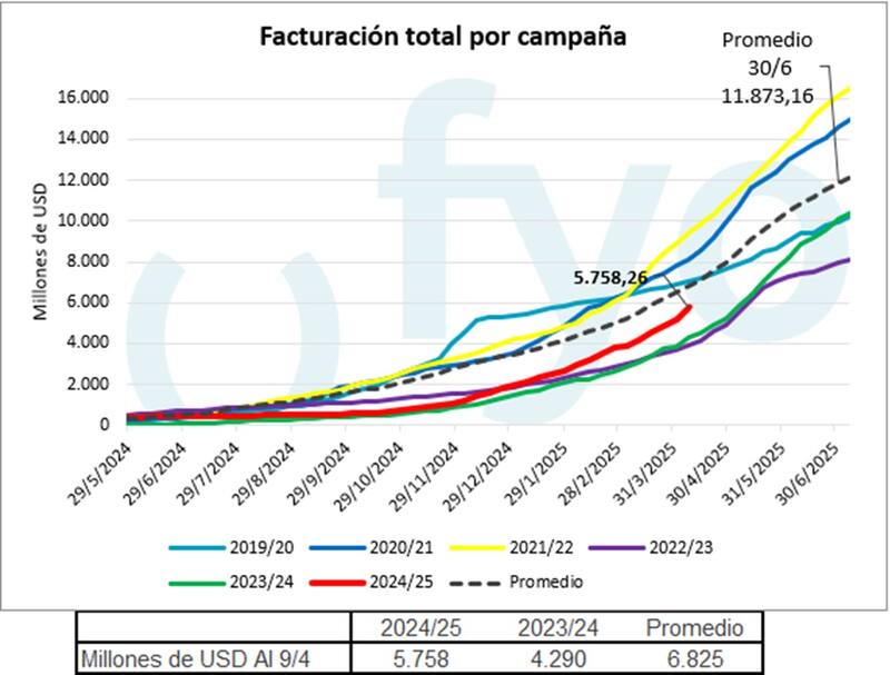Según la entidad, en lo que va del año el sector aportó u$s 8659 millones, que comparado con el mismo período de 2024 implica un alza del 35%, entre enero y abril.
