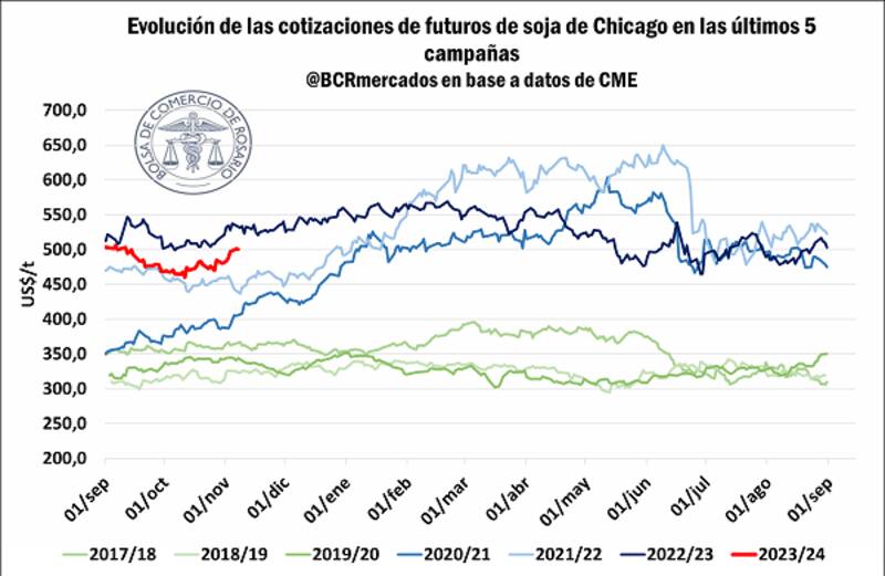 Mientras tanto, el mercado externo de referencia ha comenzado a posicionarse frente a este escenario, y en octubre el contrato con mayor volumen en CBOT ha quebrado su tendencia bajista.