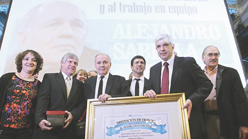 Fue una imagen atípica para un 22 de julio. A pesar del receso invernal, varios diputados nacionales de distintos bloques se arremolinaron en el Salón de los Pasos Perdidos del Congreso. Lo que los atrajo, sin embargo, no fue ningún tema legislativo, sino la presencia del director técnico (DT) del seleccionado de fútbol, Alejandro Sabella. El entrenador, que evitó confirmar ayer si seguirá al frente del equipo, recibió allí junto a sus colaboradores el premio Presidente Néstor Kirchner y la medalla 30 Años de Democracia.