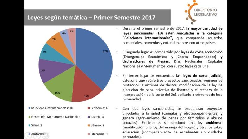 A su vez, evaluaron que las leyes sancionadas en el primer semestre del año pasado “supusieron un nivel de debate político y negociación legislativa , mientras que en el mismo periodo de 2017 “los proyectos sancionados tuvieron desde el inicio un mayor grado de consenso .