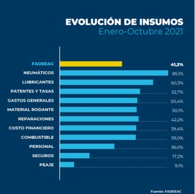 El incremento en lo que va de 2021 estuvo impulsado por el fuerte salto que registraron los Neumáticos con un avance del 85,1%, Lubricantes (60,3%), y también Patentes (52,7%), Material Rodante y Gastos Generales, ambos con subas del 50%).