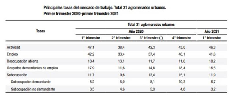 Es el nivel más elevado en lo que va de la pandemia, en concreto desde el primer trimestre del año pasado. En la misma línea, el desempleo y la subocupación, que terminó en 11,9%, también registraron los mejores datos en un año.