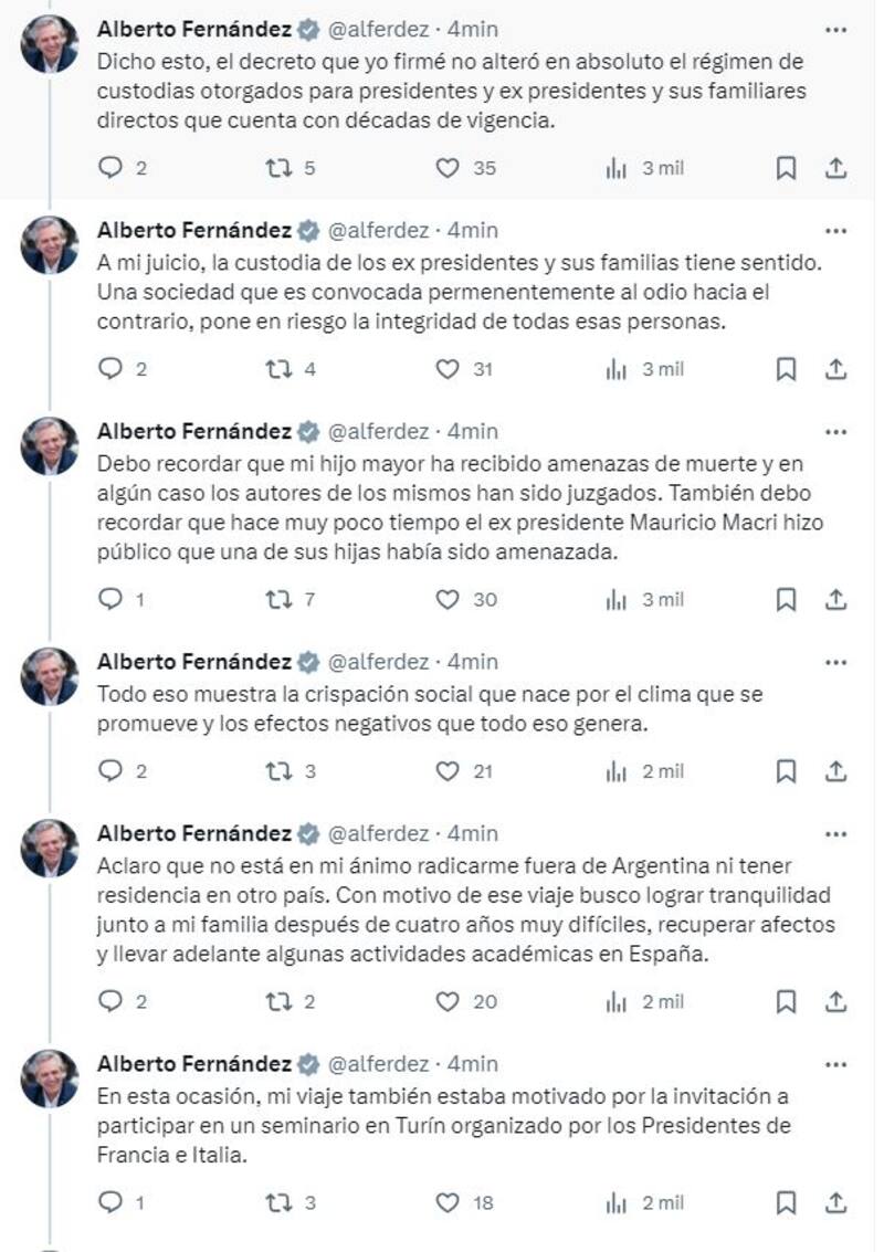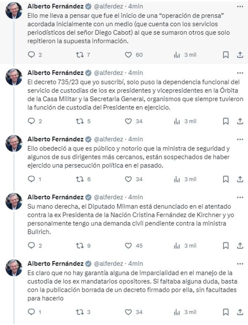 Alberto Fernández realizó un fuerte descargo este jueves, horas después de que el Gobierno de Javier Milei derogara el último decreto que firmó como mandatario, que garantizaba su custodia dentro y fuera del país.