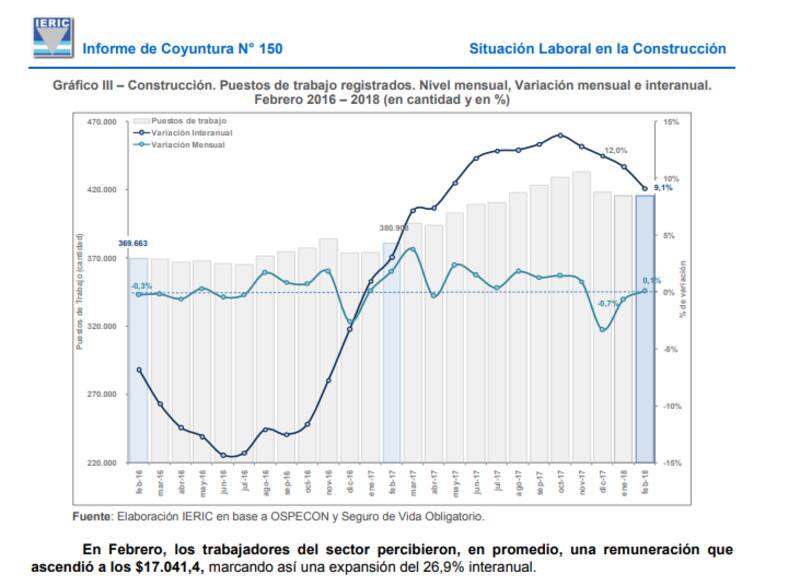 El empleo formal en la construcción aumentó en febrero 9,1% interanual y el número de trabajadores del sector llegó a 415.533 personas, de acuerdo con un informe del Instituto de Estadística y Registro de la Industria de la Construcción (Ieric).