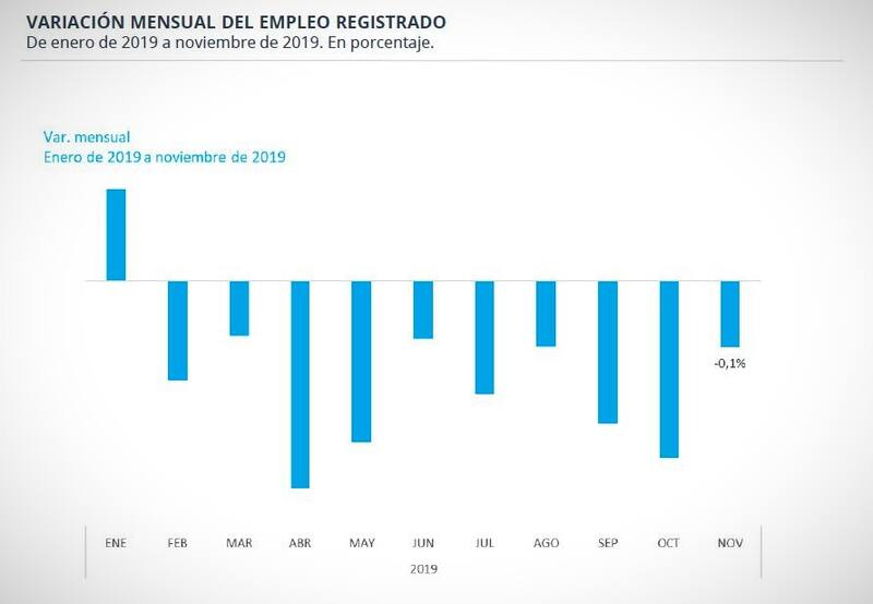 En octubre hubo 110.200 asalariados registrados menos que en el mismo mes de 2018 (-1,1%) y 20,8 mil menos con respecto a septiembre (-0,2%).
