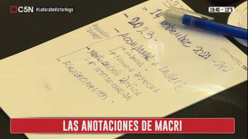 Mientras los jefes de los tres partidos de la coalición opositora, Alfredo Cornejo (UCR), Patricia Bullrich (PRO) y Maximiliano Ferraro (CC) hacían uso de la palabra, el fundador del PRO tomaba anotaciones en un bloc de notas. Pero no fueron las suyas las que divulgó el canal de noticias C5N, sino las del correntino. Pero se las atribuyó al exjefe de Estado. El texto en cuestión tenía varios errores, además de "nobiembre". Por caso, escribió "pademia", en lugar de "pandemia". Además, le faltó la "d" en la palabra "institucionalidad" y escribió "institucionalida".