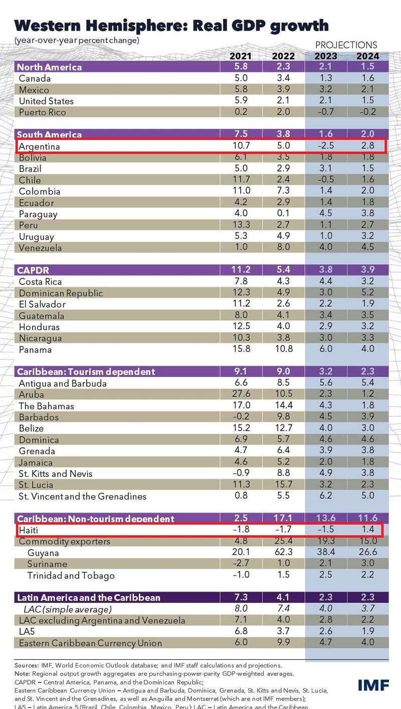 El de Argentina, se espera que sea el peor resultado económico de la región este año en términos de nivel de actividad, con una caída del -2,5%, la única recesión junto con el -1,5% de Haití.