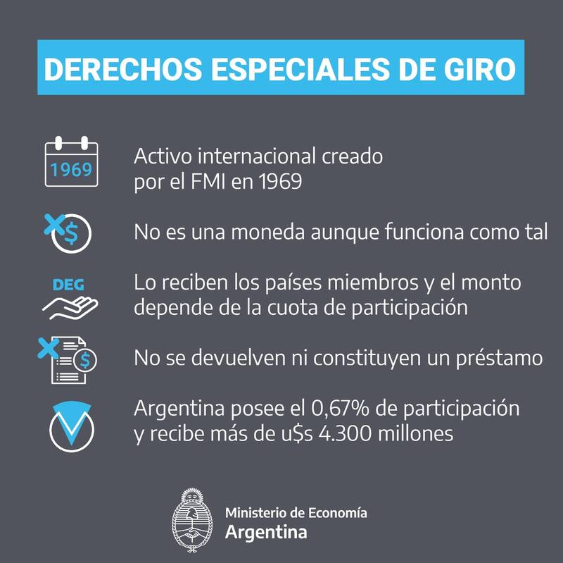 Esta distribución de DEG no representa un nuevo préstamo ni está vinculado al acuerdo de Stand by que firmó el Gobierno de Mauricio Macri sino que se trata de una distribución especial por la pandemia.
