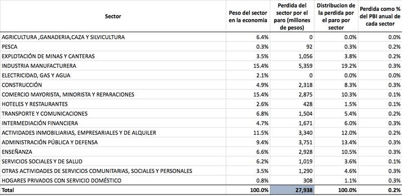 De acuerdo a fuentes del Ministerio de Hacienda, la pérdida más importante es, por supuesto, por la adhesión del paro en transporte, que no permite a los trabajadores llegar a sus puestos de trabajo e impacta negativamente sobre la provisión de servicios .
