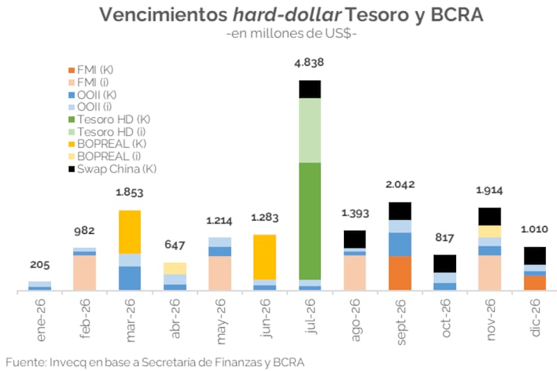 En el inicio de 2026 el cumplimiento de los vencimientos de enero despejó los riesgos de corto plazo, sin embargo, el “cuadro de fondo” permanece inalterado con un calendario cargado de exigencias que tocará su máximo en julio con un desembolso de u$s 4838 millones.