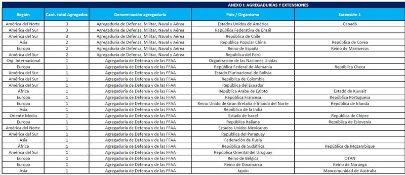Las que concentran mayor dotación, con tres militares asignados, son las de Estados Unidos, Brasil y Chile. China, Perú y España tienen dos cada una. El resto de los países cuenta con un solo representante operativo. Para un alto mando del mundo militar, "la decisión tiene una racionalidad política pero también una económica: ¿por qué tengo un agregado en un lugar, cuánto me cuesta y qué obtengo a cambio? Es una decisión que conjuga cuestiones de financiamiento y prioridades acerca de qué quiero del mundo, qué equipamiento busco y con quién entreno".