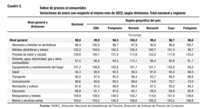 Al dividirlo por Bienes y Servicios, el primer apartado también superó las tres cifras mientras que el segundo se quedó en 93,3. Con la inercia que tienen los aumentos de precios, en febrero la inflación interanual parece que superará el 100% a nivel general.