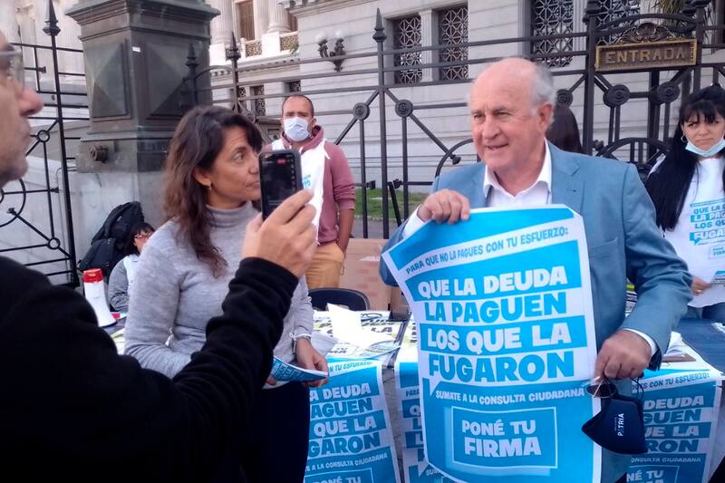 "Para que no la pagues con tu esfuerzo: que la deuda la paguen los que la fugaron", consignan unos afiches que fueron pegados en todo el territorio nacional días después de que fuera promulgado el acuerdo con el FMI. La propuesta fue acompañada con volanteadas y mesas de consulta para la firma de apoyo al proyecto.
