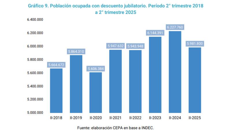 El CEMA hizo una calificación de las personas ocupadas con descuento jubilatorio y la población ocupada sin descuento jubilatorio.