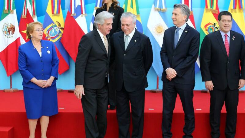 En la víspera del encuentro de los presidentes, el canciller Jorge Faurie había sido determinante al sostener que en el caso que el gobierno de Nicolás Maduro celebre un acto eleccionario a fin de mes, el Mercosur procedería a la expulsión de Venezuela. Sin embargo, el consenso logrado entre los países hizo virar las posiciones. Al respecto, el secretario de Asuntos Estratégicos, Fulvio Pompeo, que llegó junto con el presidente Macri, consideró que “la declaración no fue lo suficientemente fuerte como la Argentina lo esperaba .