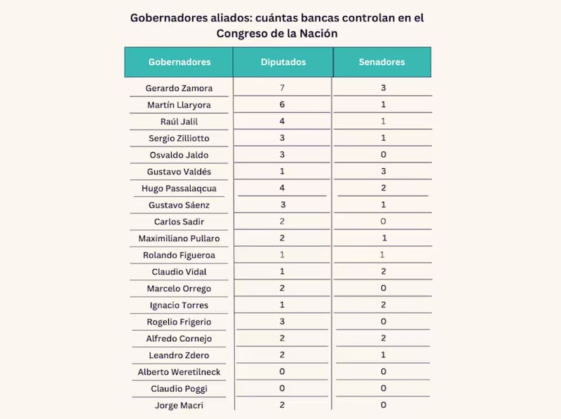 En la Rosada repiten que los gobernadores valen según el peso de sus bancas. Algunos aliados de la primera hora quedaron con representación mínima o nula, y esa correlación define el orden de prioridades. Aun así, el Gobierno confía en obtener los votos —o las ausencias— de mandatarios peronistas que cuestionan la reforma laboral por las formas, más que por el contenido.