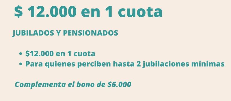 Por su parte, los jubilados que perciben hasta dos jubilaciones mínimas que son $ 63.860 cobrarán un nuevo bono de $ 12.000 en una cuota, que se suma al de $ 6.000 que empezó a pagar hoy Anses.