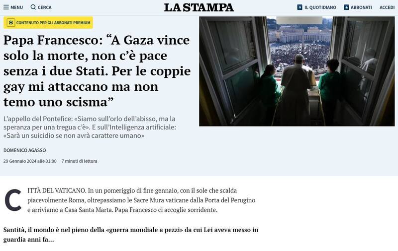 Durante su diálogo con La Stampa, Francisco también fue consultado sobre los viajes que realizará durante 2024, que hasta el momento son tres, aunque no confirmó, como se especulaba, que vaya a visitar el país.
