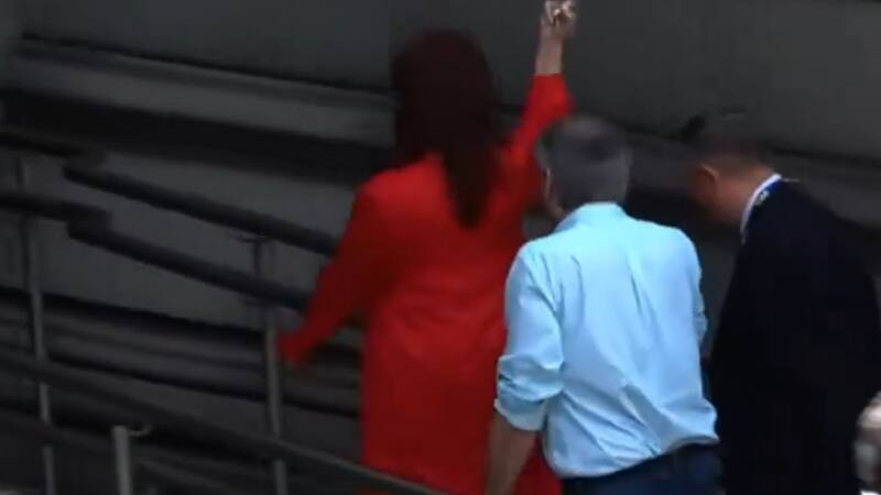 La vicepresidenta le hizo una seña de "fuck you" a una persona que le gritaba desde uno de los pisos del establecimiento y el gesto fue registrado por las cámaras del lugar.