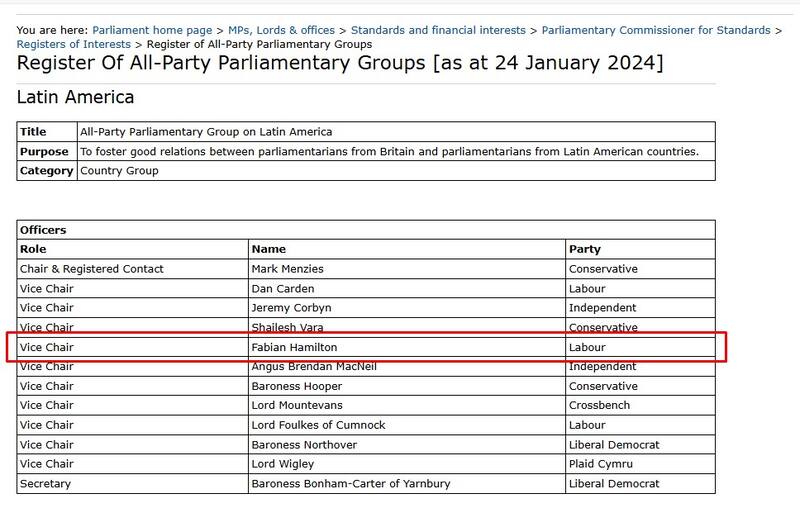 También figura como uno de los vicepresidentes en el grupo del Parlamento del Reino Unido sobre América latina, donde comparte espacio con otros legisladores como Jeremy Corbyn. Y antes que ello, ofició de ministro en las sombras en temas vinculados a la Paz y el Desarme, entre 2016 y 2023.