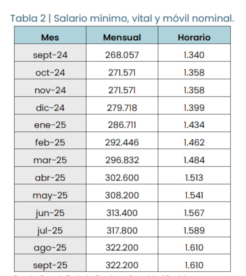 El valor nominal del SMVM, según los datos que cita el informe, se ubicó en $322.200 en septiembre, equivalente a $1.610 por hora. El EDIL subrayó que, pese a ciertos ajustes nominales en algunos meses, “la evolución de la inflación continuó superando los ajustes nominales”, lo que consolidó la pérdida de poder de compra.