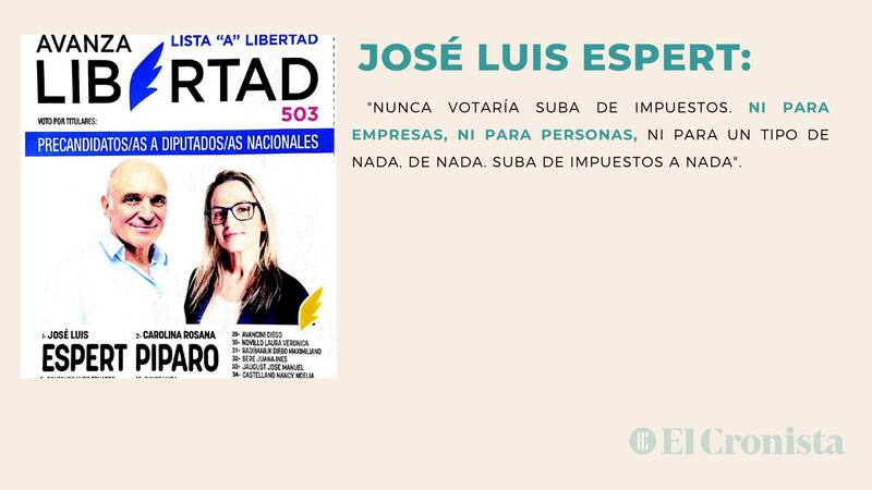 "Nunca votaría suba de impuestos. Ni para empresas, ni para personas, ni para un tipo de nada, de nada. Suba de impuestos a nada", remarcó Espert.