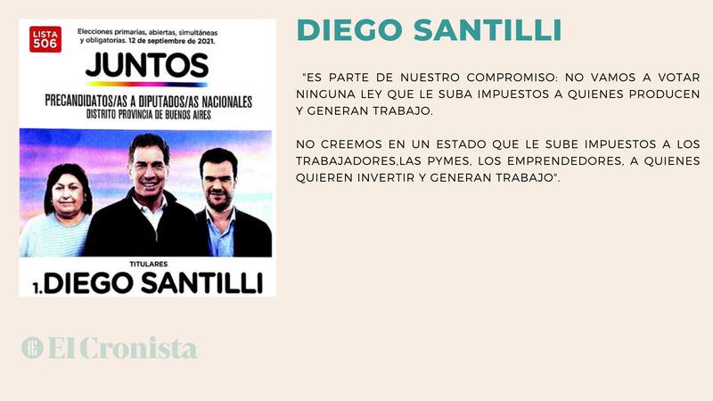 "Es parte de nuestro compromiso: no vamos a votar ninguna ley que le suba impuestos a quienes producen y generan trabajo. No creemos en un estado que le sube impuestos a los trabajadores, las pymes, los emprendedores, a quienes quieren invertir y generan trabajo", explicó Santilli a El Cronista.