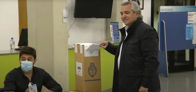 El presidente Alberto Fernández votó en la Universidad Católica Argentina (UCA), en el barrio porteño de Puerto Madero, en el marco de las elecciones legislativas que se desarrollan este domingo en todo el país.