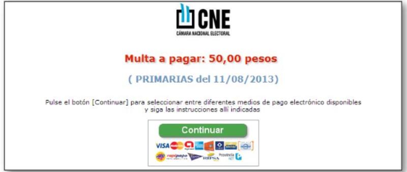 Para regularizar la situación de infracción ante el Registro de Infractores, la o el elector deberá abonar la multa prevista en el artículo 125 del Código Electoral Nacional y la Acordada 13/2013 de la Cámara Nacional Electoral (CNE).
