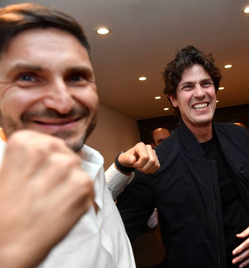 El jefe de gobierno porteño se fotografió a la espera de que suban los resultados junto a la candidata a vicegobernadora del espacio.