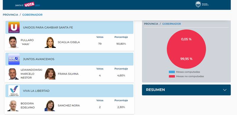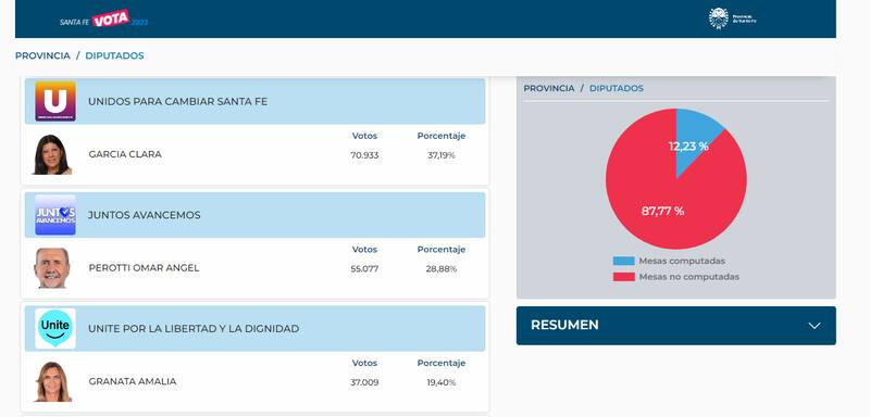 La web oficial donde Santa Fe publicará los resultados de las elecciones empezó a publicar los primeros cómputos y crece la expectativa por conocer a los ganadores.