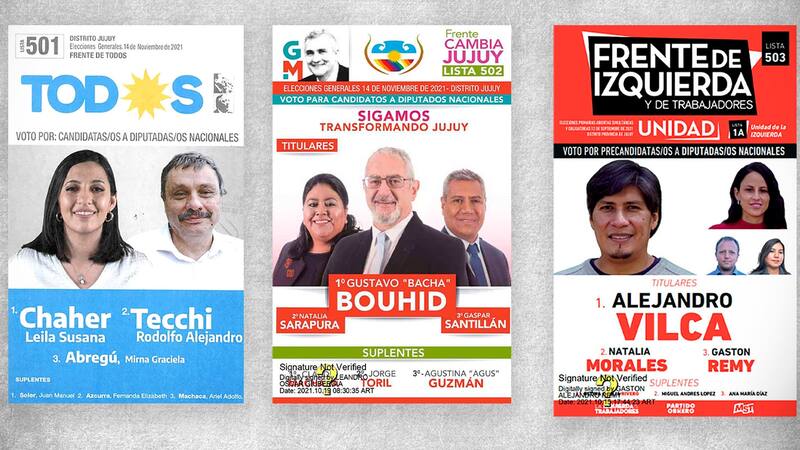 El Frente de Izquierda, que tuvo números favorables en los últimos comicios, se presentará con el dirigente sindical y diputado Alejandro Vilca. Los libertarios, que no cuentan con el apoyo de Milei, se postulan con la lista VÍA+, encabezada el exintendente de Perico, Luciano Demarco. Por el Partido Política Obrera se presenta Iñaki Aldasoro.