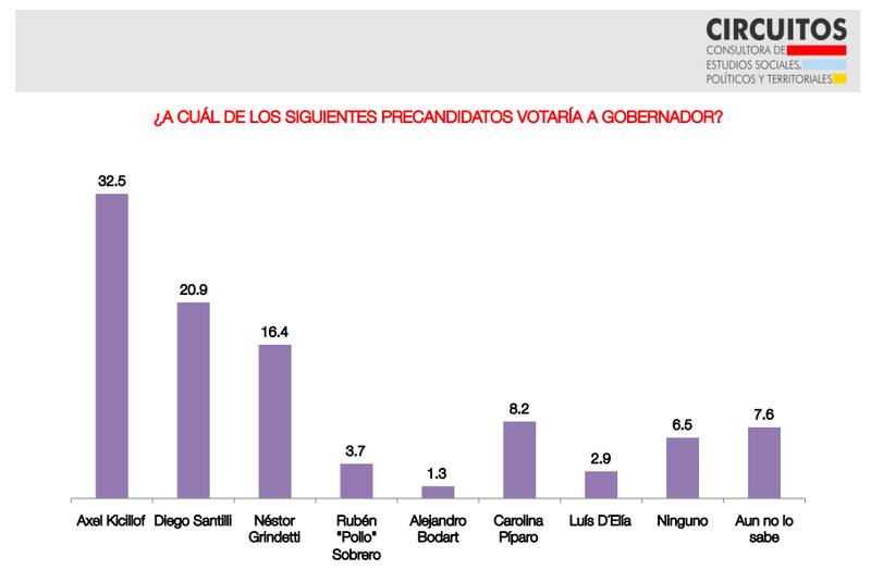 Un estudio que realizó la Universidad Nacional de La Matanza tiene como candidato ganador a la gobernación a Axel Kicillof, quiena pesar de ser el único contendiente oficialista en estas Primarias, lograría un mayor porcentaje que sus perseguidores.