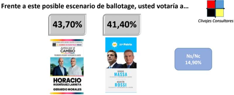 El primero que realizaron fue el ballotage entre Massa y Larreta que se daría si el actual jefe de gobierno porteño supera la interna contra Bullrich: el ganador sería el candidato de Juntos por el Cambio por dos puntos y aún se mantiene un alto porcentaje de indecisos.