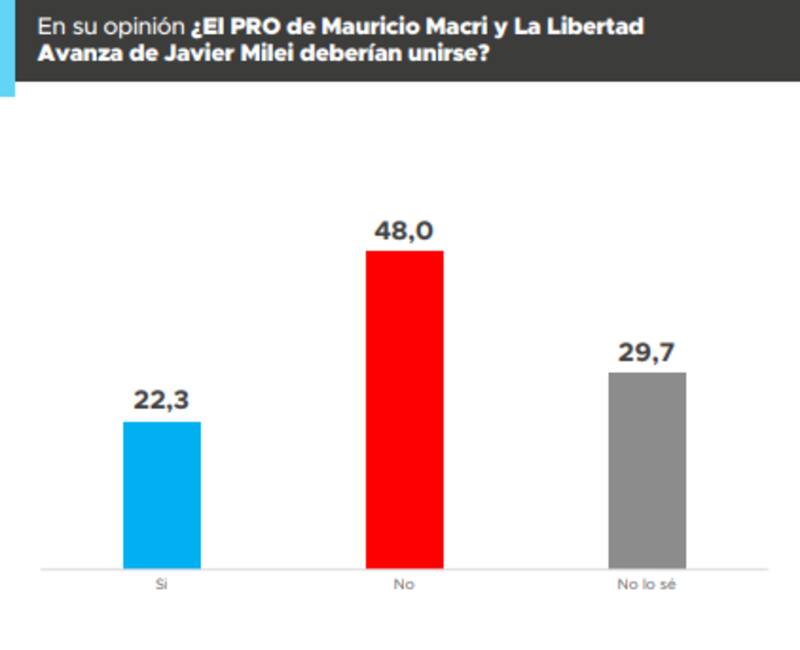 En paralelo, solo el 22,3% del electorado de Macri, Milei y la ministra de Seguridad Patricia Bullrich consideraron que los espacios deberían unirse.