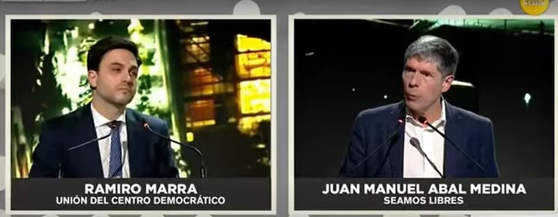 El candidato Abal Medina le preguntó:"¿Marra tiene corazón? No entiendo cómo habla de fisuras". Frente a esto, Marra le contestó: "Los zurdos romantizan a los pobres, viven de ellos. Dejen de romantizar la pobreza". Ustedes quieren vivir de los pobres, yo quiero solucionarlo".