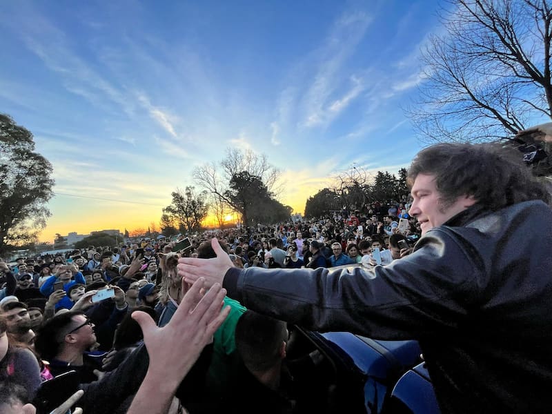 ¿Cuándo se convencieron que podían hacer una elección por encima de lo que algunos sondeos pregonaban? En el bunker de Milei describen un punto de quiebre en el tramo final de la campaña, al menos como marco de percepción desde el cual empezaron a sospechar y convencerse de que algo grande podía ocurrir esa noche: las visitas de Milei a Bahía Blanca y Mendoza capital, como parte de la última gira por las provincias.