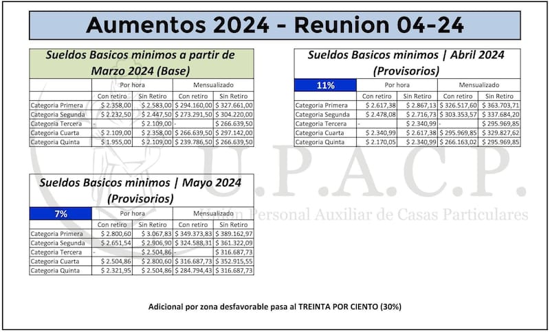 El personal de las trabajadoras casas particulares que presenten servicios mensuales (con o sin retiro), cobrarán en mayo los importes correspondientes a abril con un aumento del 11%.