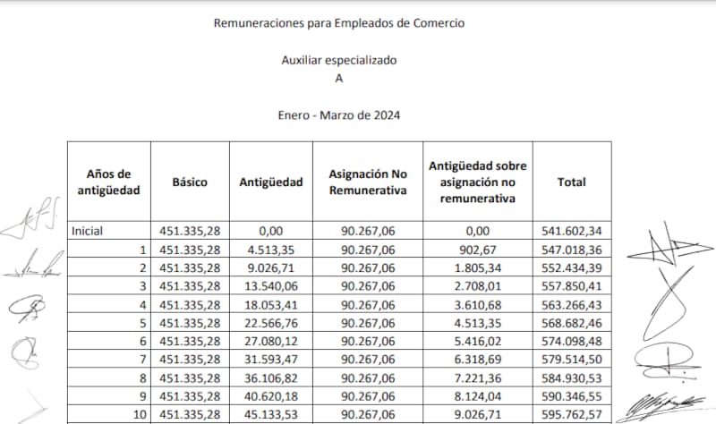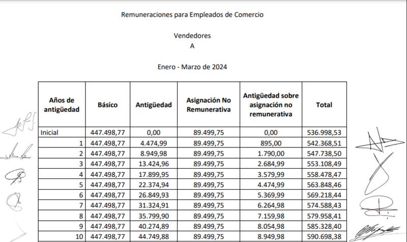 A continuación se detalla la escala salarial para las principales categorías de los empleados de comercio: