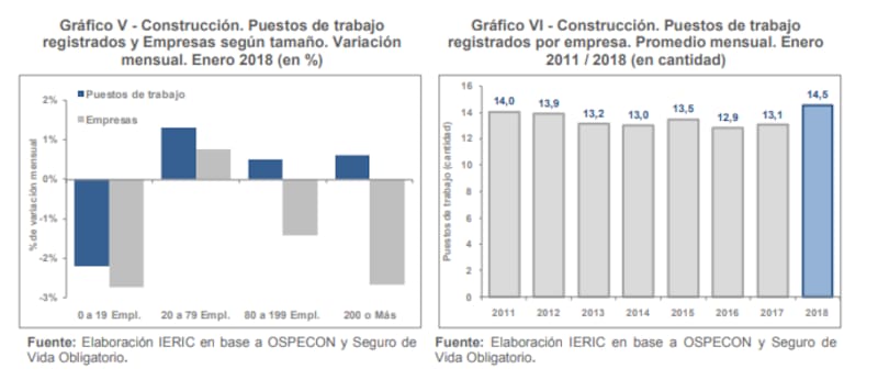 El indicador de empleo promedio por empresa también evidenció una expansión en enero, situándose en un nivel de 14,5 puestos de trabajo registrados por firma constructora, el más elevado de la serie histórica para un mes de enero.