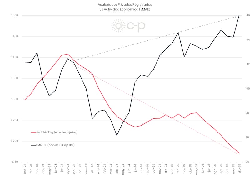 Esa advertencia cobra más peso con los datos en la mano. Esta semana se conoció que el desempleo trepó al 7,5% en el último trimestre de 2025. No es solo el número: es la tendencia. Dos puntos por encima de 2023. Un punto más que el año anterior.