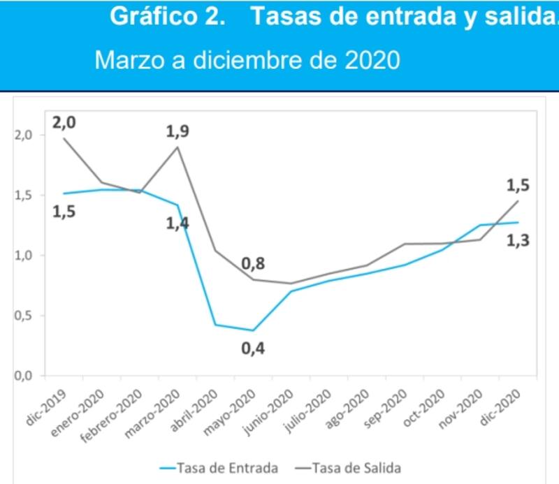 Es la tasa de salida más alta desde marzo, que registró una de 1,9% no bien comenzó la cuarentena: desde abril osciló entre 0,8% y 1,1%, aunque en un sendero creciente a medida que se levantaron las restricciones y más empresas internalizaron el derrumbe de la economía al volver a operar en medio de la pandemia y redujeron personal. Otras compañías, especialmente pymes y comercios, directamente no volvieron a abrir.