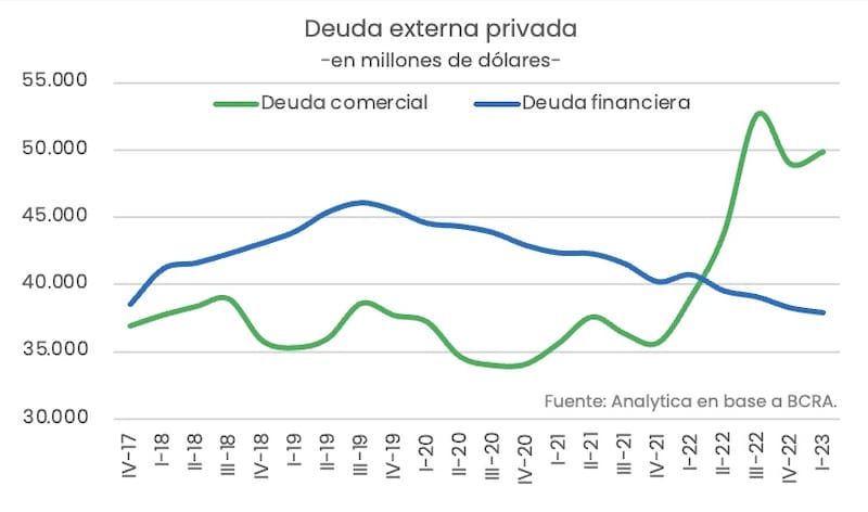 Mientras la deuda financiera suele ser con bancos y tenedores privados de deuda, la comercial se mantiene entre empresas del mismo grupo u otros proveedores comerciales. "Tenés más grados de libertad en la deuda comercial que en la financiera", indicó.