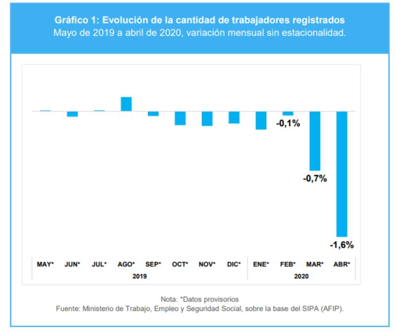 Si se toman los dos primeros meses de impacto del coronavirus y la cuarentena, el número es aún máyor: se perdieron casi 275.000 empleos en blanco. Y todo esto es sólo en el sector formal, ya que el informe, por sus características, no mide el impacto en el trabajo informal.