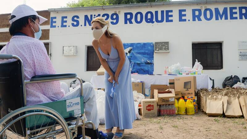 De vestido largo celeste y barbijo nude para cumplir con los protocolos sanitarios, la Primera Dama fue recibida en el aeropuerto de Resistencia por el gobernador Jorge Capitanich y la vicegobernadora Analía Rach Quiroga. Desde allí se trasladó a Charata donde firmó un convenio de colaboración entre el Municipio, representado por la intendenta María Luisa Chomiak, y la Fundación Alberto Lavalle.