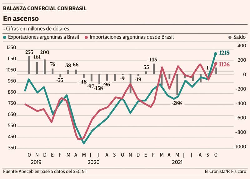Un dato relevante es que más allá de esta mejora en el total del intercambio, las exportaciones se expandieron 50,5% en octubre en relación al año anterior, y llegaron a su mayor nivel en siete años, en concreto, desde septiembre de 2014. Por su parte, las compras al vecino país crecieron a un ritmo menor, del 37,6% interanual.