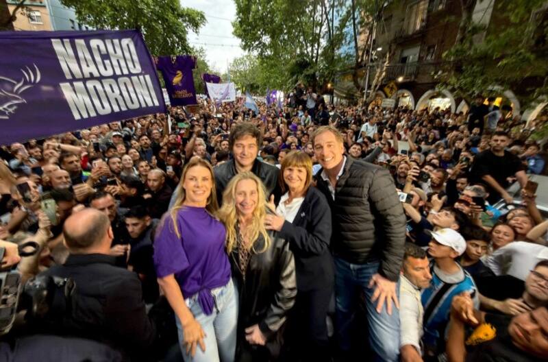 El mandatario dio un breve mensaje para los militantes, con megáfono en mano, desde la parte trasera de una camioneta, acompañado por la postulante Karen Reichardt, además de Karina Milei. También estuvo la primera candidata a senadora por la Ciudad, Patricia Bullrich.