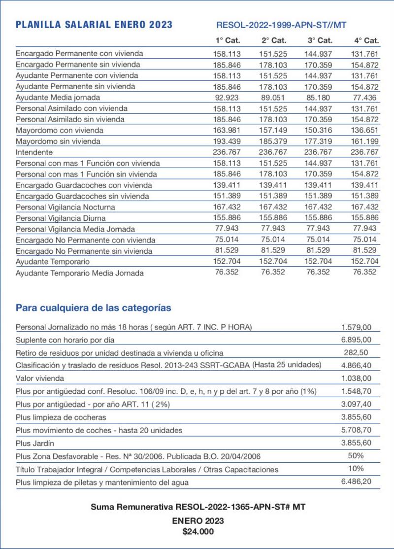 Los Encargados de Edificios cobrarán en febrero la liquidación correspondiente a enero 2023 junto a un bono de $ 24.000.